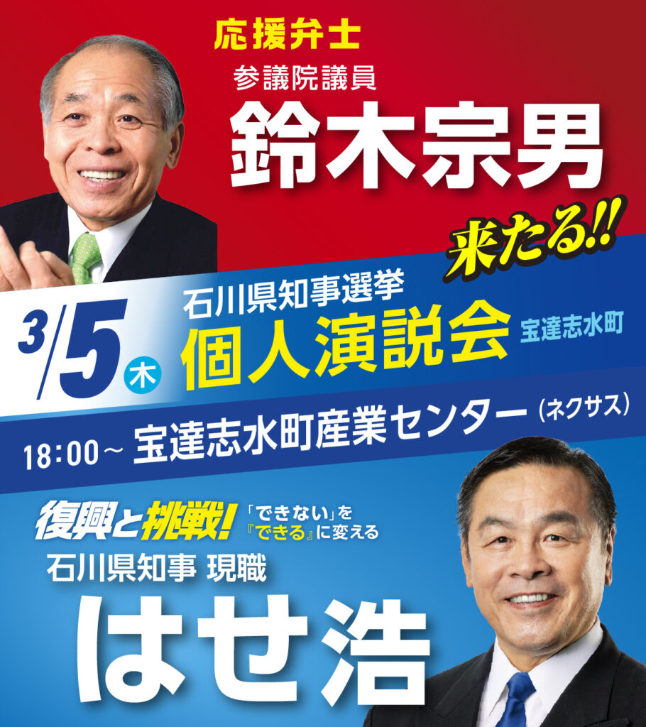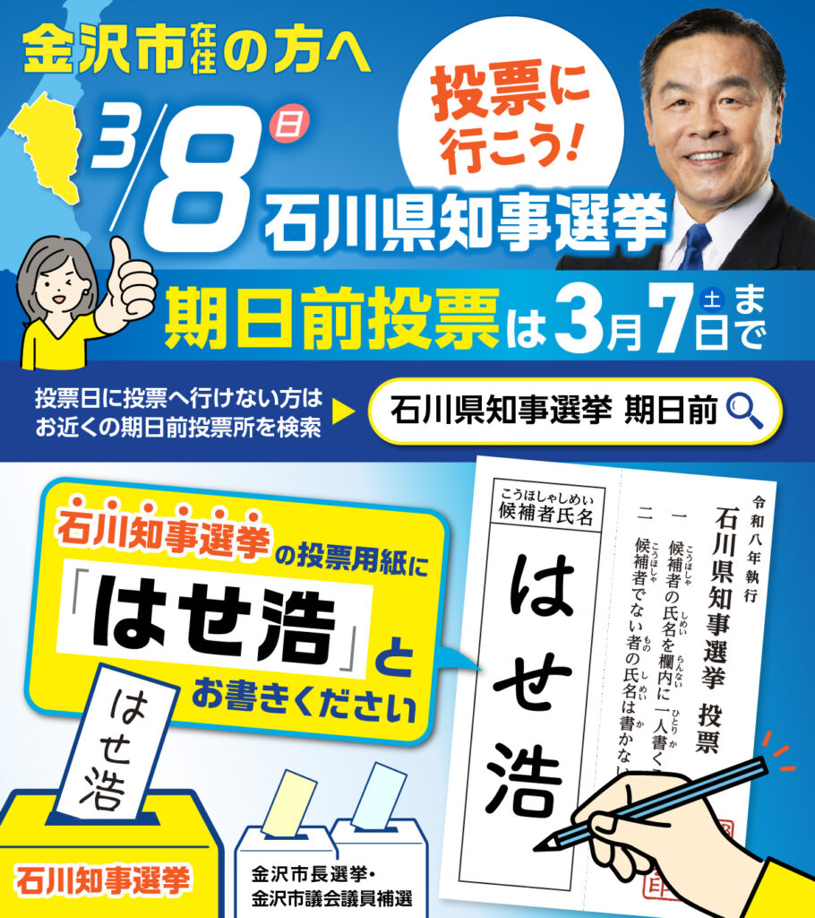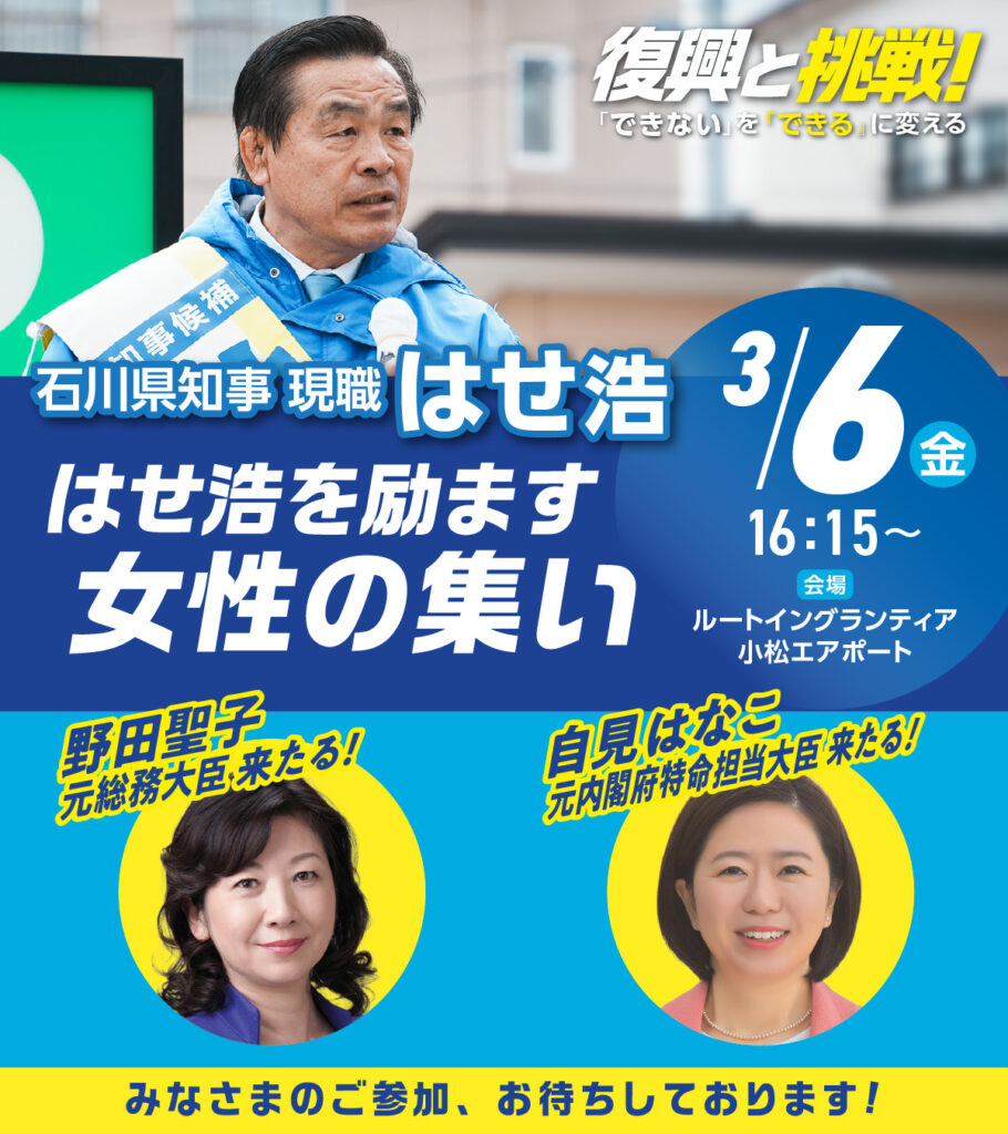 県民の皆さんの声を丁寧にお聞きし、県民の皆さんとともに、幸福度日本一の実現を目指し、石川県のさらなる成長に挑んでいきます。