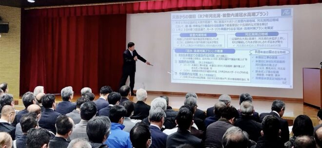 皆さんには特段のご努力で復旧復興工事にご尽力賜り、本当にありがとうございます。真剣に聞いてくださり感謝です。
